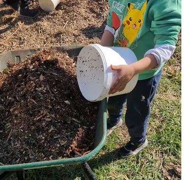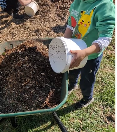 Ils peuvent semer, plantez, pailler et récolter. Ils découvrent ainsi la terre et le cycle des végétaux.