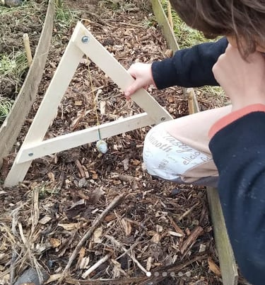 Nous accueillons et accompagnons les enfants avec leurs enseignants.es pour l'école du dehors. Les enfants peuvent découvrir les vers de terre, les insectes, les grenouilles.....